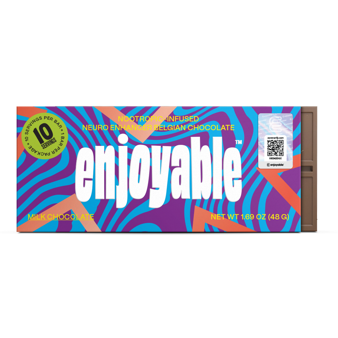 10 servings per bar, available in Dark Chocolate and Milk Chocolate.